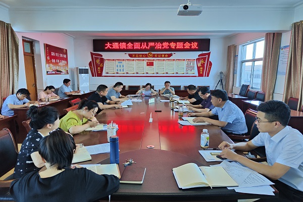 為進一步落實全面從嚴治黨要求,6月30日下午,大通鎮在鎮政府三樓召開全面從嚴治黨專題會議,鎮黨委書記董義松主持會議。