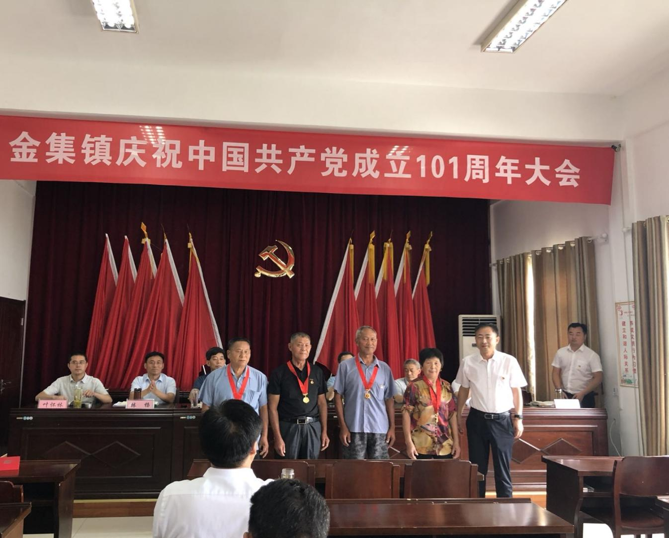 隨后大會(huì)舉行了“光榮在黨50年”紀(jì)念章頒發(fā)儀式,集中為4名老黨員代表頒發(fā)紀(jì)念章。頒發(fā)儀式現(xiàn)場(chǎng),鎮(zhèn)黨委書(shū)記王德佑與老黨員代表親切握手,為老黨員代表佩戴“光榮在黨50年”紀(jì)念章,表達(dá)對(duì)老黨員同志們的崇高敬意。