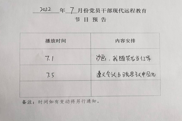 上一篇:吳莊村2022年6月份遠程教育播放計劃[ 06-01 ] 下一篇:吳莊村2022年8月份遠程教育播放計劃[ 08-01 ]