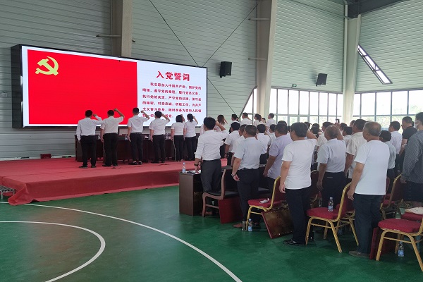 頒獎結束后,由13名2022年新入黨的預備黨員同志帶領全體與會黨員宣誓,面對鮮紅的黨旗,所有人都高舉右手,再次鄭重地宣誓,重溫入黨誓詞,接受心靈的洗禮,增強黨員的榮譽感和使命感。