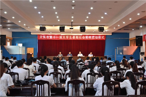 7月13日下午,“天聚英才”青春振興--天長市第十一屆大學生暑期社會實踐啟動儀式在市公安局交管大隊舉行。市委常委、組織部長王林,市人社局黨組成員、副局長王德俊,市公安局黨委委員、政治處主任查清澄出席儀式。儀式由團市委副書記馬翔主持。市直相關(guān)單位、用人單位、暑期大學生代表約150余人參加了儀式。