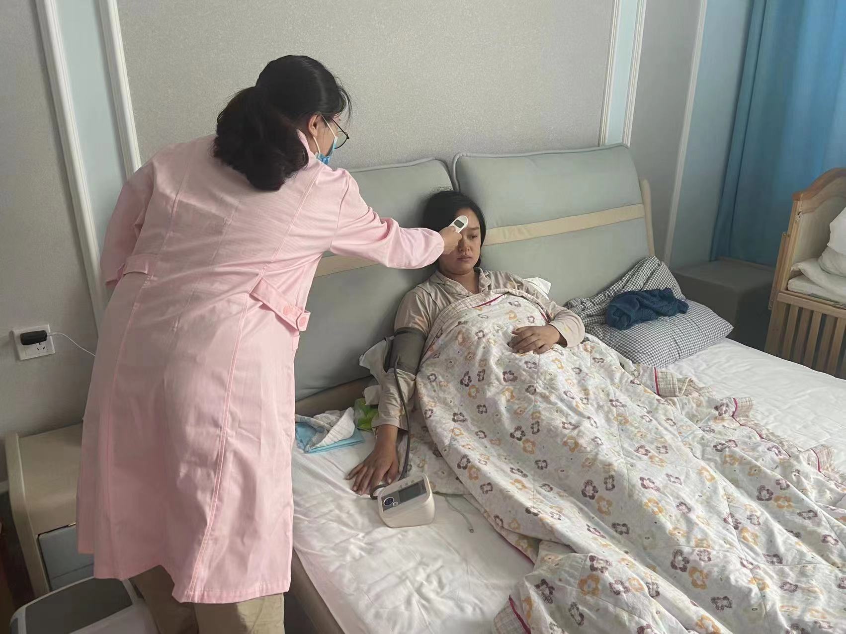 工作人員入戶后與產婦進行親切交談,為產婦測體溫、量血壓,了解新生兒喂養情況,查看新生兒身體狀況,并對居住環境給予了合理指導,同時指導產婦如何進行產后42天健康檢查。