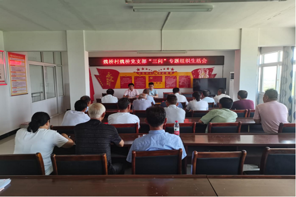 7月8日,魏橋村魏橋黨支部召開“三問”專題組織生活會(huì),會(huì)議分五個(gè)議程:一是回顧前期學(xué)習(xí)“三問”專題內(nèi)容;二是通報(bào)上次組織生活會(huì)整改落實(shí)情況;三是通報(bào)此次組織生活會(huì)征求意見建議情況;四是報(bào)告支部班子剖析情況;五是開展批評與自我批評。