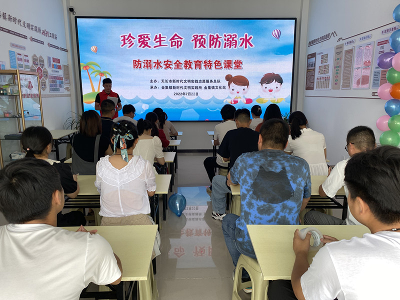 為進一步加強轄區內安全教育,保證生命安全,幫助廣大青少年兒童增強防溺水安全意識,掌握防溺水知識技能,提高自救互救能力,金集鎮新時代文明實踐志愿服務隊7月29日在金集鎮新時代文明實踐所開展“珍愛生命、 預防溺水”安全教育特色課堂活動。