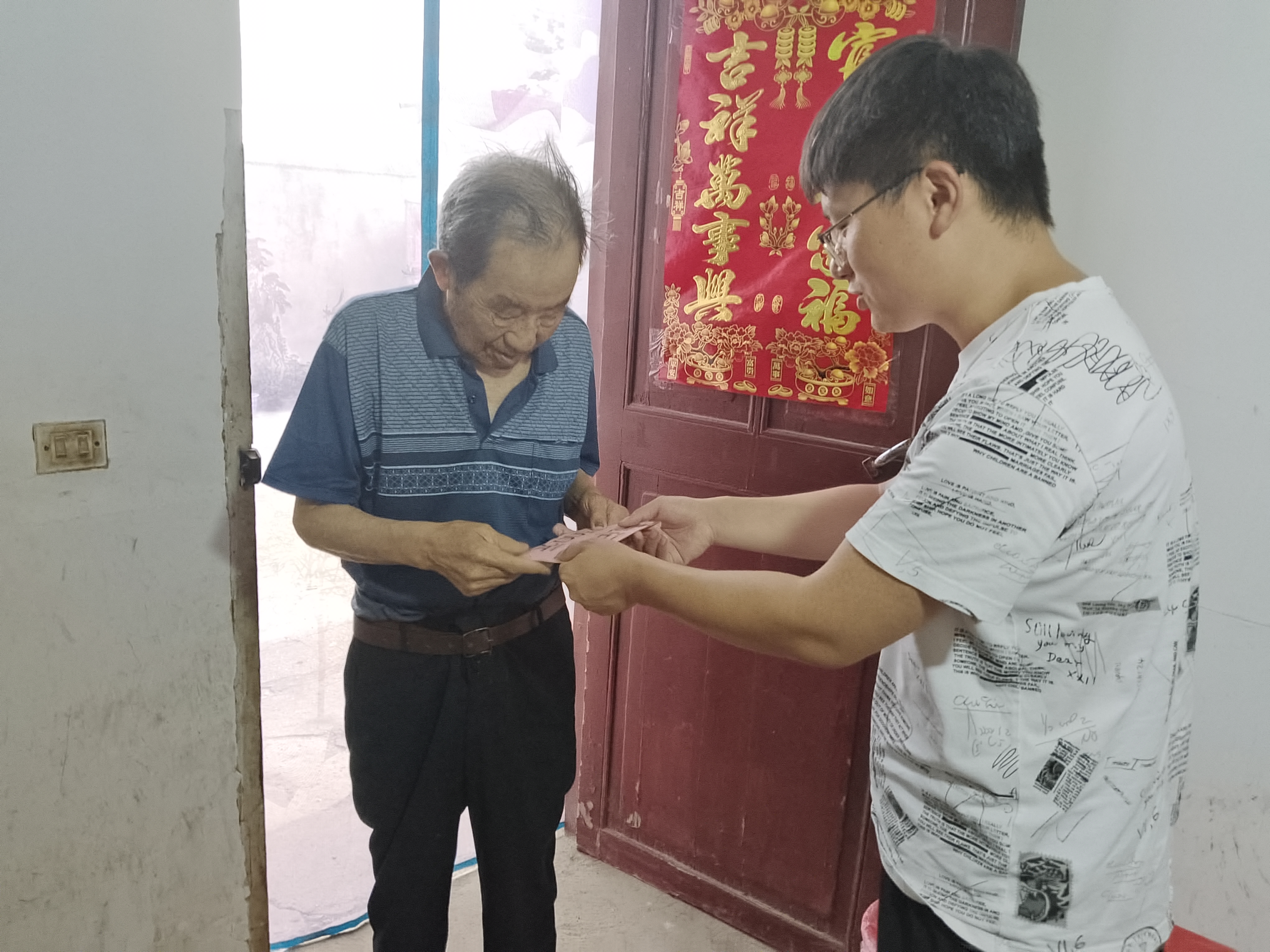 石梁鎮副鎮長陳金中慰問古庵村退役軍人,致以節日的問候。