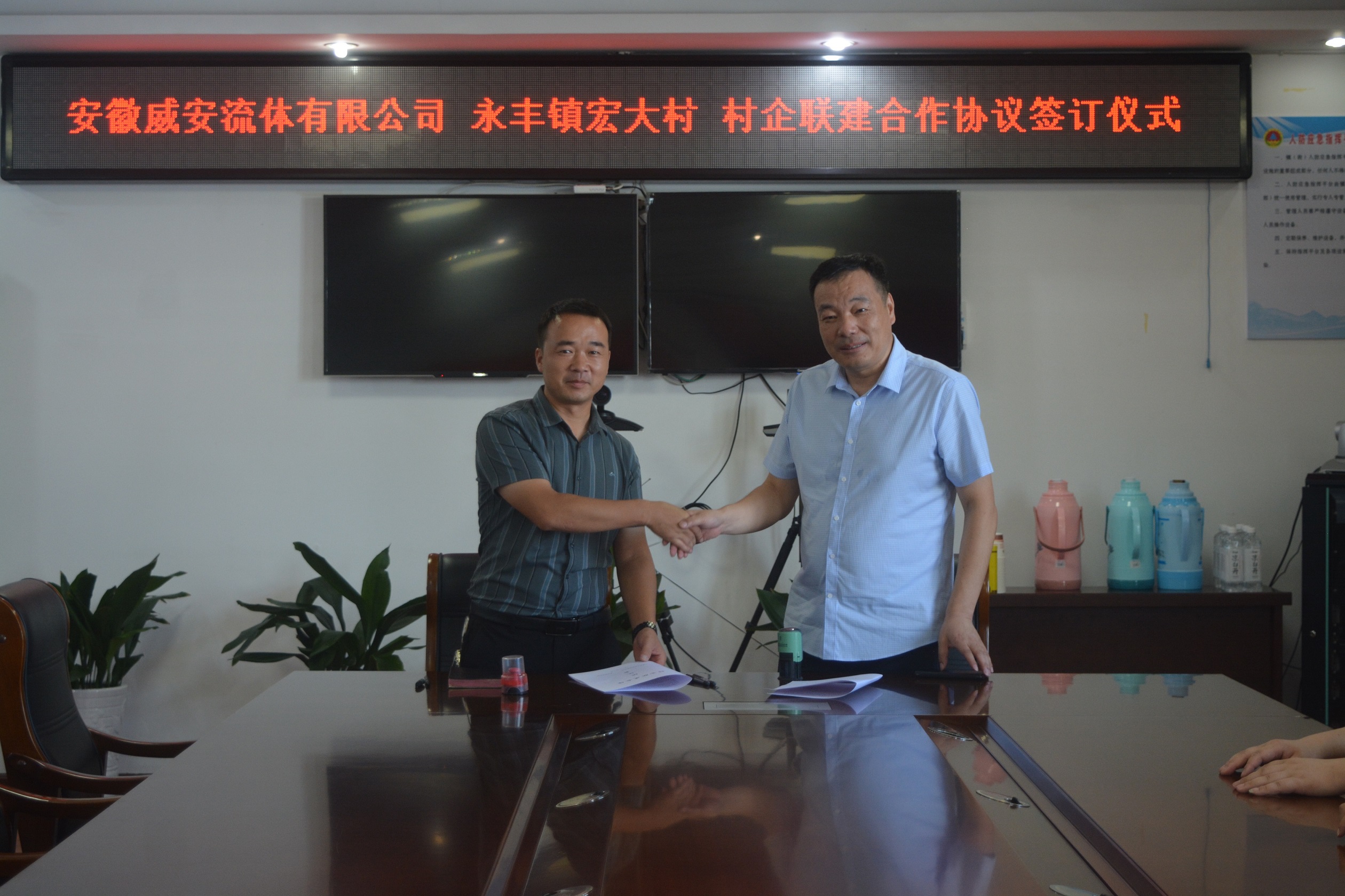 簽約儀式上,鎮主要負責同志對安徽威安流體有限公司一行人的到來表示熱烈歡迎。并指出,安徽威安流體有限公司是一家實力強勁、業績優秀、主營業務突出的企業,與宏大村聯建項目,積極響應了上級黨委“黨建引領促發展,村企聯建促發展”號召,開啟鄉村振興共贏模式,鞏固發展成果,實現互推互助雙提升。