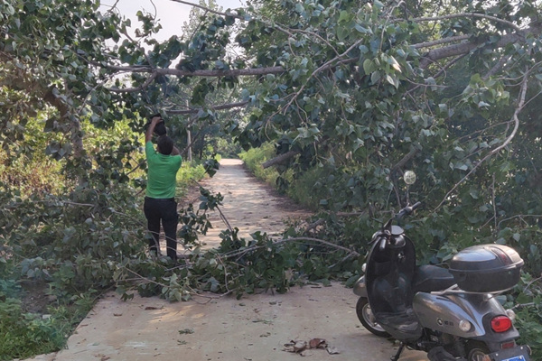 7月11日,近期因受強風影響,部分路段樹木倒伏,嚴重影響村民出行。長安村道路專管員黃安龍同志在風后及時對全村主要交通路段進行了逐一排查,對倒伏至路面的樹木進行清理,第一時間確保了村民的出行安全。