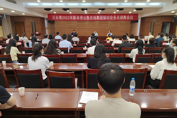 8月30日上午,天長市委組織部召開2022年新錄用公務員報到暨鎮街公務員擇崗會議。會議由市公務員局副局長、公務員管理股股長王兵主持,市委常委、組織部長王林同志出席會議并講話,市直招錄單位分管領導、鎮街組織委員及63名新錄用的公務員參加會議。