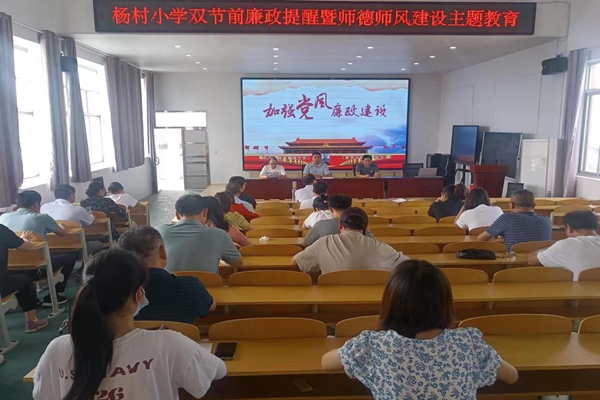 為進一步推進師德師風建設工作,營造風清氣正的節日氛圍,9月8日下午,天長市楊村小學黨支部開展了“雙節”前廉政提醒暨師德師風建設主題教育。會議由該校黨支部書記崇傳崗主持,全體黨員及教師參加。