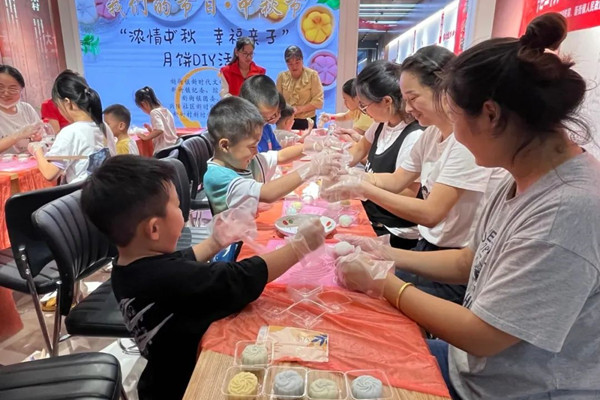 為弘揚中華優秀傳統文化,促進親子關系,營造和諧的節日氛圍,9月8日下午,新街鎮新時代文明實踐所聯合鎮綜合文化站、紀委、團委、婦聯等部門開展“濃情中秋 幸福親子”冰皮月餅DIY活動,共吸引了12對親子參與本次活動。活動主要分為傳統文化知識普及、競答、做月餅、詩朗誦共四個環節。首先,志愿者帶領小朋友們通過觀看視頻學習中秋節的由來,并通過趣味問答的形式加深小朋友對中秋節的民俗、美食等傳統文化的了解。隨后,在志愿者一步步講解和示范下,親子做月餅熱熱鬧鬧的開始了,從揉面、包餡兒、壓模……看著月餅漂亮成型,小朋友和家長們臉上都洋溢著幸福的笑容,紛紛表示收獲滿滿。其間,小朋友們分別進行中秋詩詞朗誦,以詩賀中秋,為大家送去節日祝福。