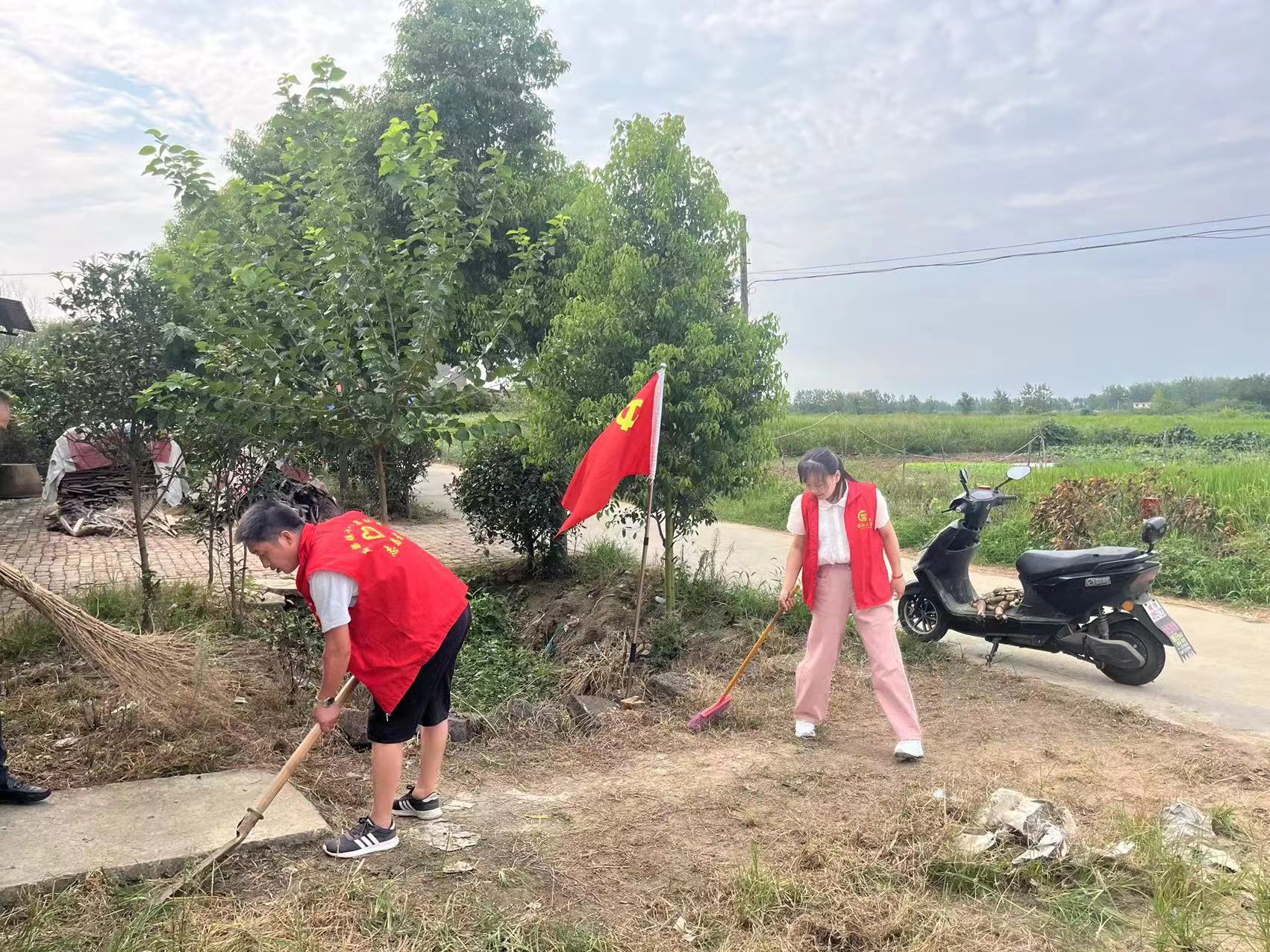 正當大家整理好屋內,站在門口松了一口氣時,他們又看到了老人的門口道路凹凸不平,雜草叢生,考慮到老人腿部殘疾,門口凹凸不平的道路和叢生的雜草,極大的影響了老人的出行,我們的黨員同志又立即擼起袖子,拿起鐵鍬,鏟平了凹凸不平的路,清理了門口的雜草,保證了老人出行的安全。