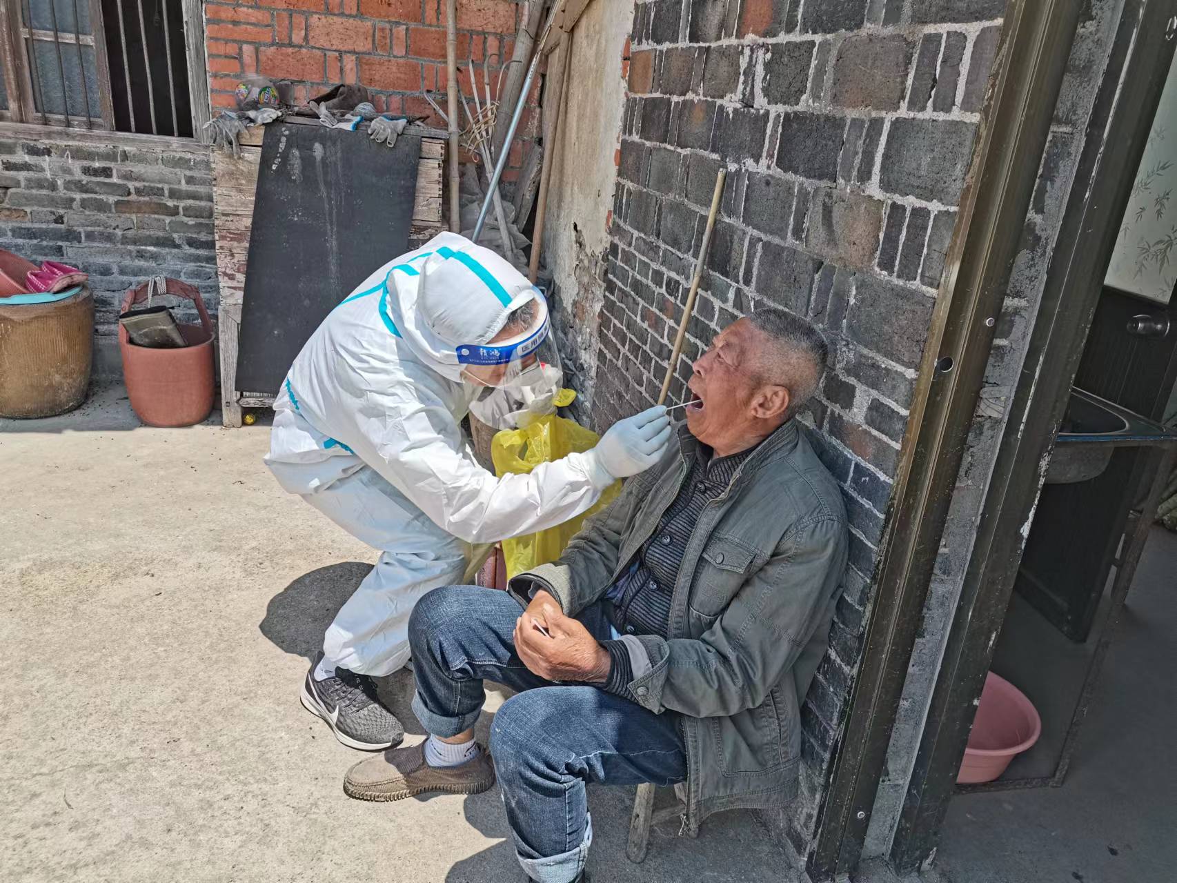 每到一戶村民家中,黨員志愿者們都會(huì)對(duì)村民進(jìn)行詳細(xì)的信息登記,一邊耐心安撫,另一邊村醫(yī)細(xì)心指導(dǎo)他們張開嘴,小心、迅速為其進(jìn)行采樣,采樣的醫(yī)務(wù)人員動(dòng)作輕柔,盡量減少他們的不適感,臨走前,還會(huì)貼心的告訴村民們注意日常防護(hù)和室內(nèi)消毒。他們本著“不落一戶、不落一人”的原則,逐戶進(jìn)行檢查,為百姓送去溫情的服務(wù)。