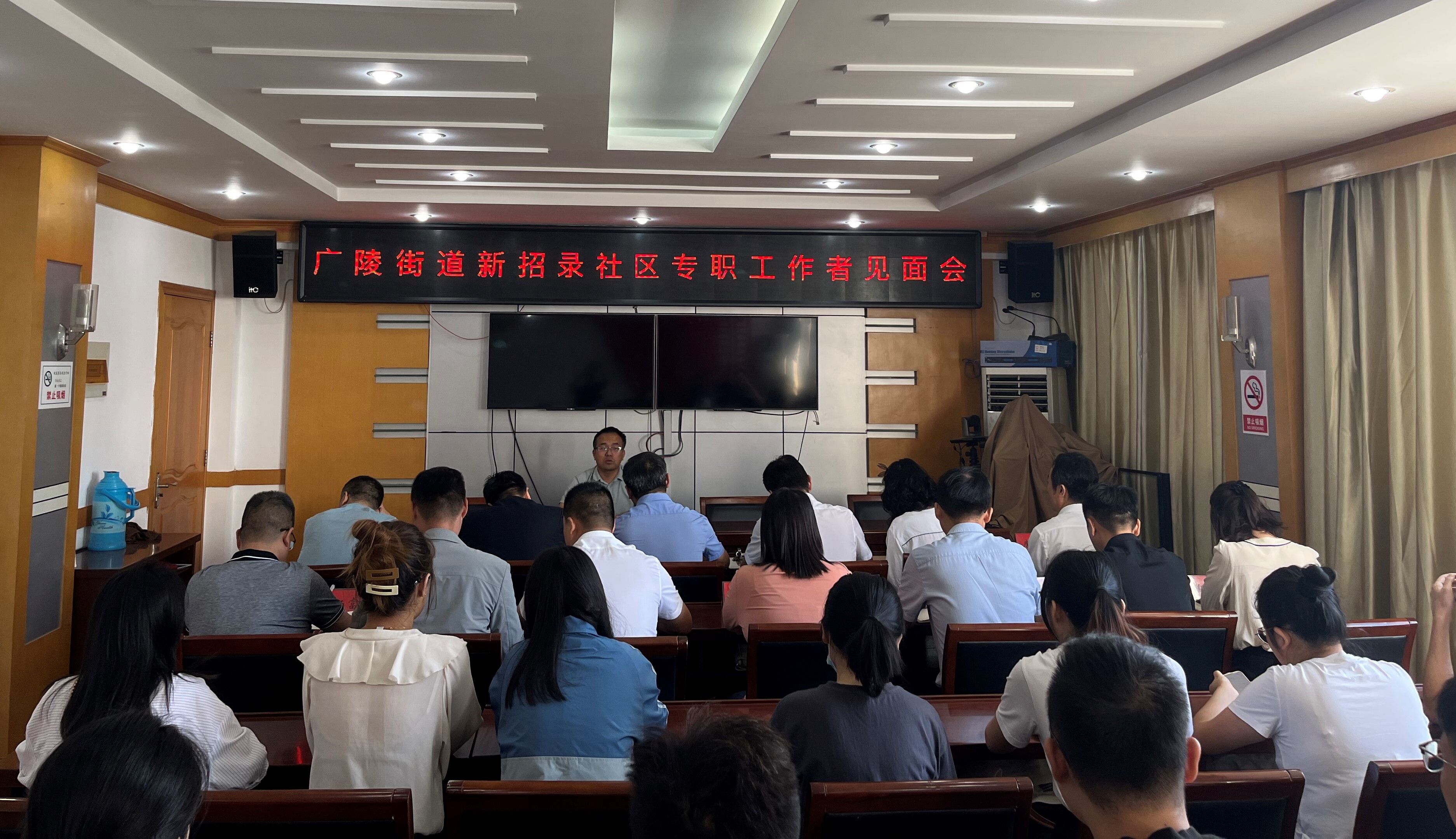 9月19日上午,天長市廣陵街道召開新招錄社區專職工作者入職見面會,廣陵街道有關負責同志、各居(村)黨組織書記和14名新招錄社區專職工作者參加會議。