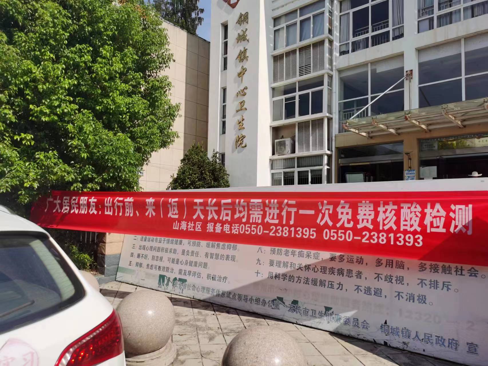 2022年8月8日,山海社區為了進一步宣傳常態化核酸檢測以及主動報備的重要性,專門制作橫幅并上街懸掛。