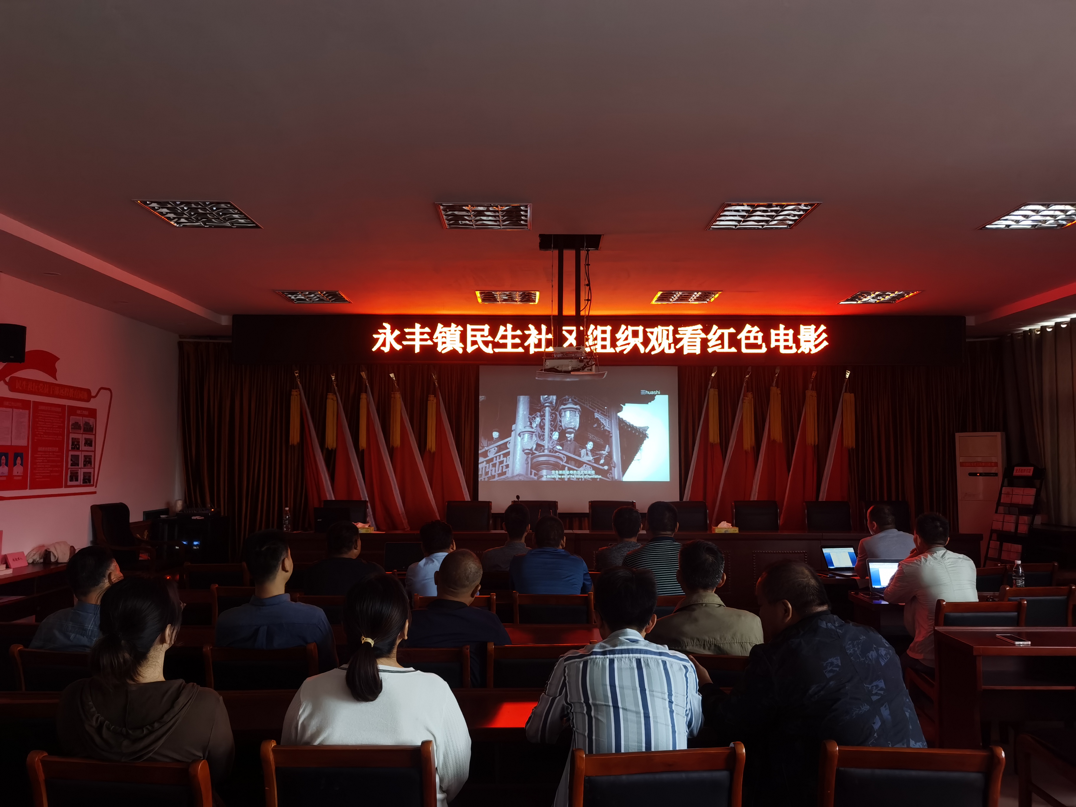 電影開始前,由民生社區黨總支書記梅良琪領唱,一起將《義勇軍進行曲》、《團結就是力量》等歌曲鏗鏘有力地唱了一遍,緊接著又給大家重溫了“九一八事變”的歷史,最后與今年新申請的入黨積極分子共同觀看了影片《紫日》,觀看過程中,富大龍呈現給觀眾精湛的演技,那份憋屈、嘶吼和反抗,那份血性,是鐵骨錚錚的中華兒女,扛住了侵略,打退了敵人,為后輩人撐起了一片天,每一幀影像,都深深敲擊著大家的心靈。隨著紀錄片的播放,黨員們牢記初心使命、奮力前行的信念愈發堅定。