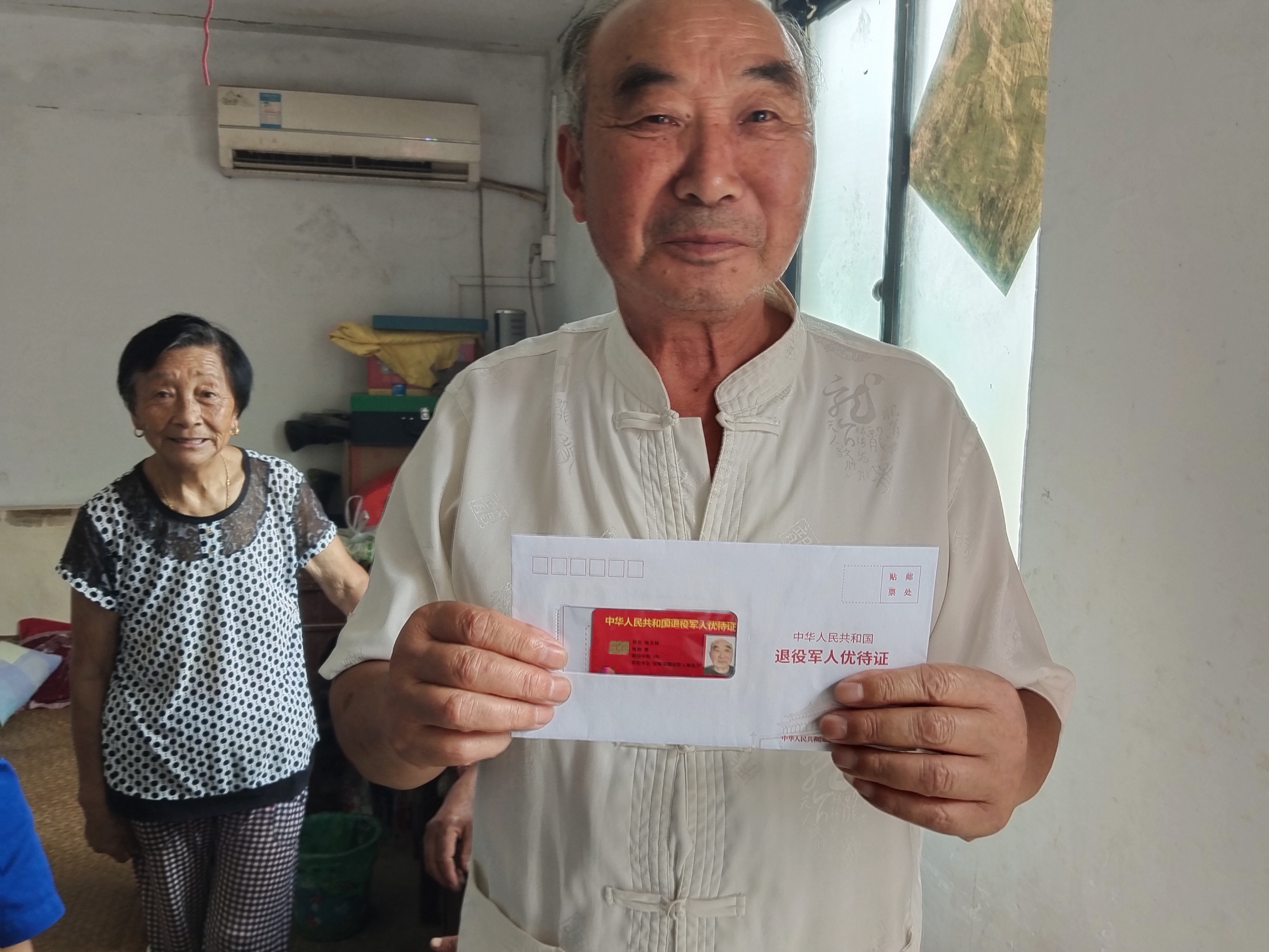 退役軍人優(yōu)待證是退役軍人和其他優(yōu)撫對(duì)象享受優(yōu)待服務(wù)的憑證,也是社會(huì)力量拓展優(yōu)待內(nèi)容、識(shí)別服務(wù)對(duì)象的標(biāo)識(shí),具有彰顯榮譽(yù)、身份識(shí)別、待遇落實(shí)、服務(wù)管理等功能。此次現(xiàn)場(chǎng)頒發(fā)的優(yōu)待證以紅色為基調(diào),正面印有優(yōu)待證種類名稱、持證人基本信息、相片等,背面印有制證銀行名稱、銀行卡號(hào)等信息。圖片為古庵村工作人員送優(yōu)待證上門。