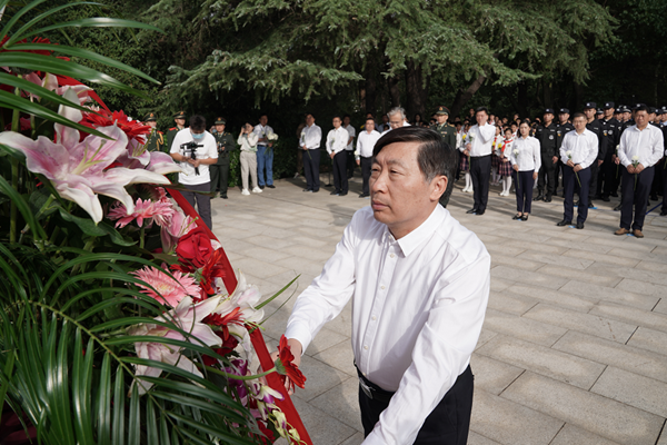 隨后,賀家平、張宏生、盧金堂、史法勇等市領導緩步繞行,瞻仰烈士紀念碑,并和少年兒童、各界群眾代表依次走到烈士墓前,獻上手中鮮花,表達對英烈們的無限敬仰和懷念之情。大家紛紛表示,要繼承革命先烈的遺志,弘揚革命精神,立足本職,愛崗敬業,為實現中華民族偉大復興而努力奮斗!