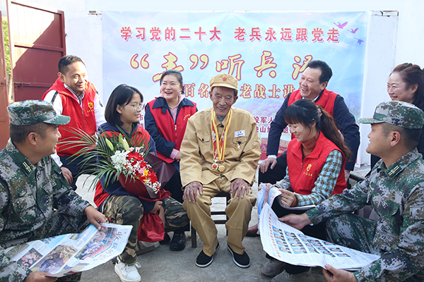 突出“紅”味,聚焦黨性教育,傳承革命精神。一是開展黨課“微宣講”,用思想筑牢“信仰支柱”。利用七一、八一、烈士紀念日等重要節點,邀請革命老戰士到抗日軍政大學第八分校紀念館、烈士陵園等紅色教育基地開展“一刻鐘”微黨課宣講,為青年黨員和入黨積極分子講述崢嶸歲月,深刻了解中國共產黨奮斗歷程,堅定理想信念、筑牢思想根基。二是組織老兵講黨課,用使命撬動“擔當杠桿”。聘請參加長津湖、上甘嶺等戰役的王興昌、跟隨羅炳輝將軍作戰的李元忠等100余名老戰士為“黨課開講啦”主講人,走進機關單位、學校、村(社區)開展“黨課開講啦”活動,講述英雄故事,教育廣大黨員、干部及青少年傳承英雄力量、牢記使命擔當。三是送學黨的二十大精神,用初心育活“奮斗源泉”。組織30名政治素質高、紀律性強的退役軍人志愿者,帶領廣大青年志愿者,第一時間把黨的二十大報告原文送到李元忠等95位老戰士家中,開展黨的二十大報告誦讀活動,交流分享黨的二十大精神學習體會,暢談人生理想、樹立奮斗目標。今年以來已組織革命老戰士上“紅色黨課”148次,受教育黨員群眾3萬余人。