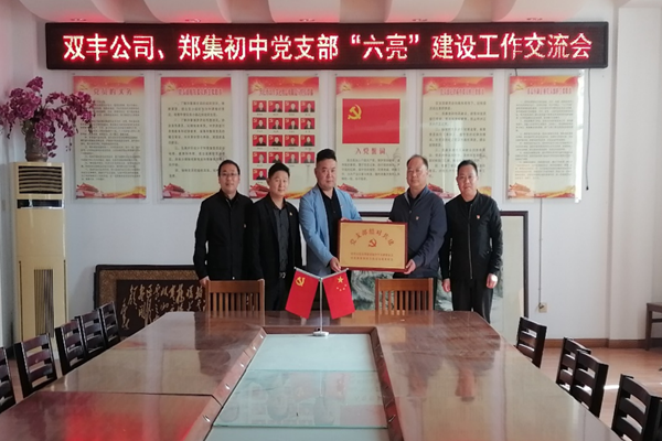 為認真貫徹落實上級黨委關于“六亮”行動部署要求,積極推進黨組織標準化規范化建設。鄭集初中黨支部與鄭集雙豐公司黨支部開展“六亮”建設工作交流活動。