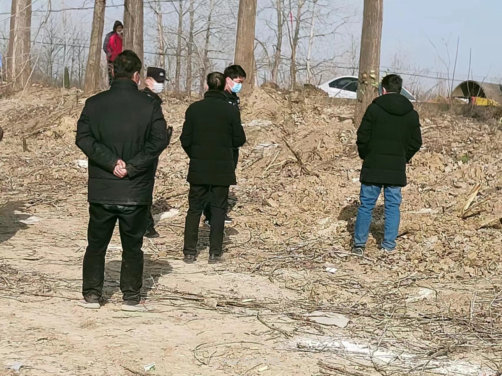 2022年12月21日,十八集社區收到三墩居民組居民反應自家種的樹被其他人偷偷砍了,得知此事,社區調解人員立即驅車前往現場,現場還有石梁鎮派出所工作人員。據了解反饋,現場出現樹樁的地方本來是兩棵參天大樹,前兩天還在,但是今天早晨突然變成了兩個樹樁。社區工作人員和派出所工作人員在周圍進行走訪,未取得有價值的線索,該事件還待進一步走訪調查。