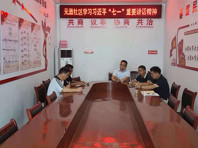 7月10日,大通鎮朱鎮長來到大通社區發表重要講話,帶領社區工作人員學習習近平七一重要講話及精神。