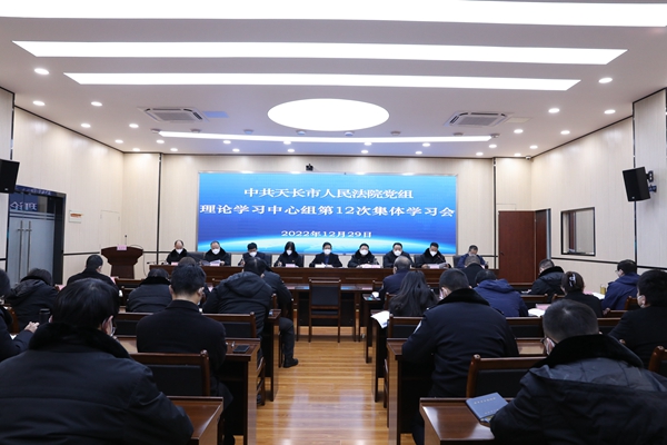 12月29日,天長法院召開黨組理論學習中心組擴大會,該院黨組書記、院長侯金鵬主持會議,院領導班子成員,三級、四級高級法官,庭室負責人等參加。會上,侯金鵬宣講黨的二十大精神。