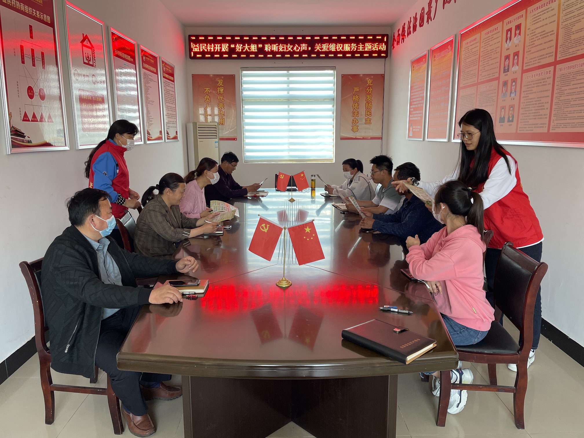 為進一步深化提升新時代家庭文明建設,創新社會綜合治理工作,積極有效化解居民群眾的矛盾糾紛,引導廣大婦女維護個人權益,益民村結合當前疫情防控形勢,專題組織開展形勢分析會,研判當前村民家庭關系。5月16日益民村開展“好大姐”聆聽婦女心聲,關愛維權服務主題活動。