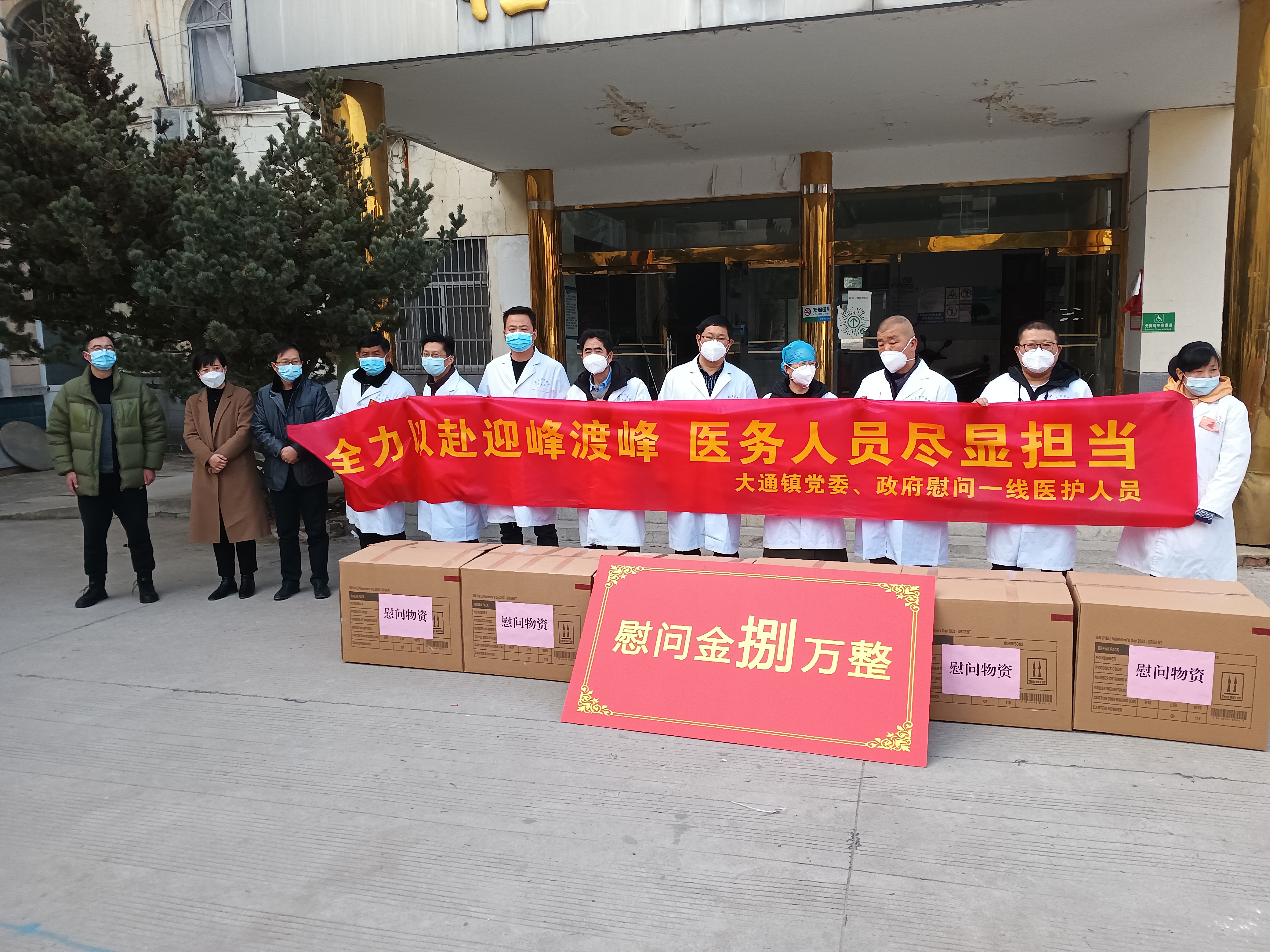 2023年1月9日下午,大通鎮黨委、政府主要領導前往鎮中心衛生院,慰問新冠疫情迎峰渡峰58名一線醫務人員,對一線醫生的敬業精神和醫療水平給予充分肯定,發放慰問金8萬元、生活物資若干。就醫療救治和健康服務工作開展調研,當日住院119人,是日常住院人數的3倍,為市直兩院分擔救治壓力做出了重大貢獻。面臨疫情防控工作重心從“防感染”轉向“保健康、防重癥”和“兩節”返鄉高峰期,大通鎮黨委、政府堅持人民至上、生命至上,重點從以下幾個方面開展工作: