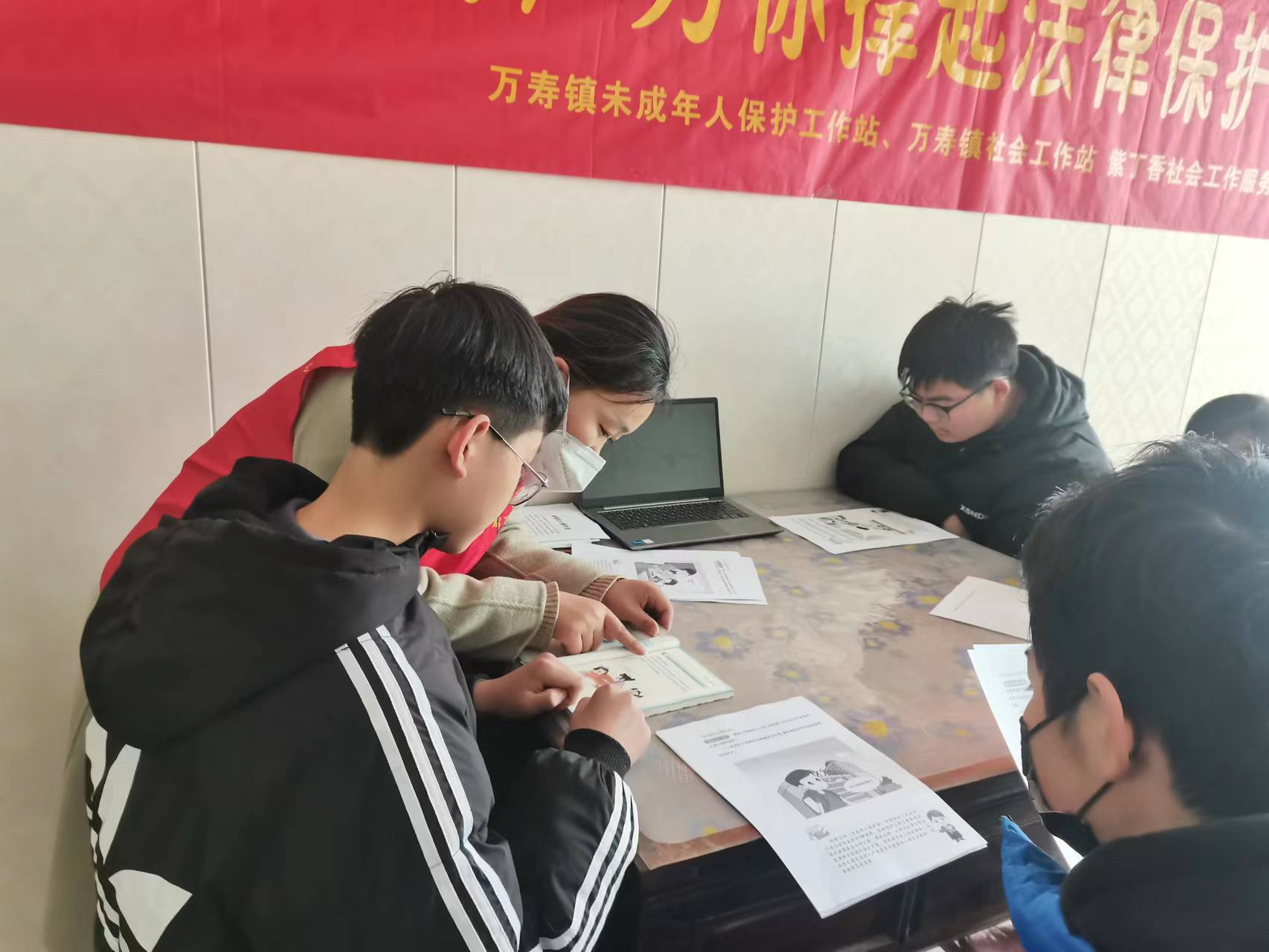 萬壽逢集活動現場,社員通過分發宣傳手冊告知群眾要引導未成年人參加有益身心健康的活動,預防和制止未成年人的一些不良生活習慣,家長要尊重未成年人隱私,幫助未成年人健康快樂地成長。法律保護談話會上,社工為在場的未成年帶來了圖文并茂的宣傳手冊和書籍;與他們解答了未成年人的六大保護、案例釋法平臺接到受害人網絡欺凌投訴后應該怎么辦?等等,最后和他們一起觀看與未成年有關的電影。