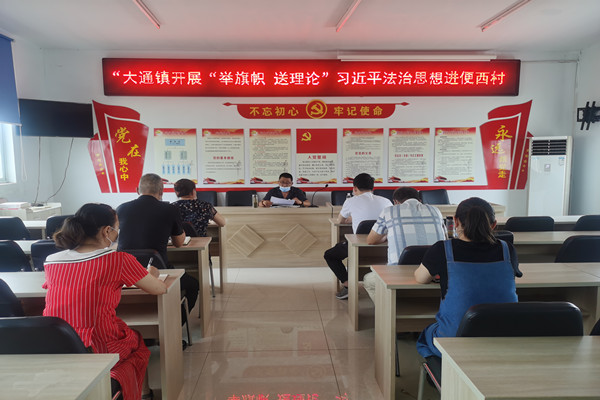 習近平法治思想是馬克思主義法治理論中國化的最新成果,是習近平新時代中國特色社會主義思想的重要組成部分,為深入學習習近平法治思想,引領全民學法、懂法、守法,10月10日大通鎮開展“舉旗幟 送理論”習近平法治思想進便西村宣講活動。宣講結束后大家表示會繼續深入學習習近平法治思想,自覺做習近平法治思想的堅定信仰者、積極傳播者,做到知法懂法,為文明鄉村建設助力。
