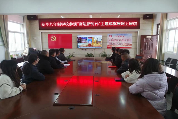 2023年2月8日,新華九年制學校黨支部組織全體在職黨員和學校領導班子成員,集中參觀“奮進新時代”主題成就展網上展館,引導黨員干部感悟新時代十年非凡變革,從中汲取奮進的力量。