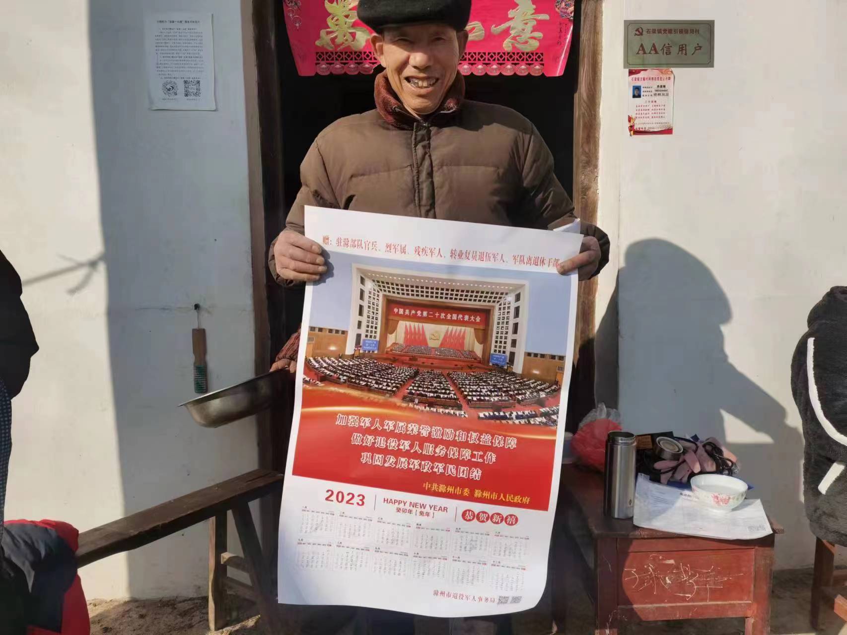 為進一步做好擁軍優屬工作,切實讓村內退伍軍人與軍屬感受到黨和政府的溫暖,近日,古庵村開展為退伍軍人與烈士子女“送年畫,送溫暖”的慰問活動?;顒又?,村兩委干部入戶發放2023年年畫,每進到一戶退伍軍人家中,村干部都向他們表達新春的祝愿,并且了解他們的生活以及身體情況。通過此次送年畫活動,不僅增強了優撫對象的政治榮譽感,同時也營造出敬軍、擁軍的濃厚氛圍。