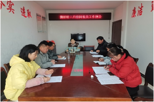 為進一步加強黨建網格隊伍建設,凝聚網格力量,強化責任意識,提升業務能力,做好網格化服務管理各項工作, 2023年2月3日,魏橋村召開網格員工作例會,魏橋村網格長和網格員參加了會議。
