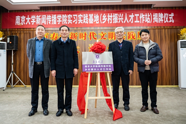 3月5日上午,南京大學(xué)新聞傳播學(xué)院研究生實(shí)習(xí)實(shí)踐基地暨鄉(xiāng)村振興人才工作站揭牌活動在萬壽鎮(zhèn)綜合文化中心隆重舉行。南京大學(xué)新聞傳播學(xué)院副院長胡翼青教授,天長市副市長周巧玲,天長市委組織部常務(wù)副部長王友仁,天長市文旅局、人才辦、鄉(xiāng)村振興局、萬壽鎮(zhèn)、鄭集鎮(zhèn)、銅城鎮(zhèn)、汊澗鎮(zhèn)、金集鎮(zhèn)等相關(guān)負(fù)責(zé)同志參加揭牌儀式。