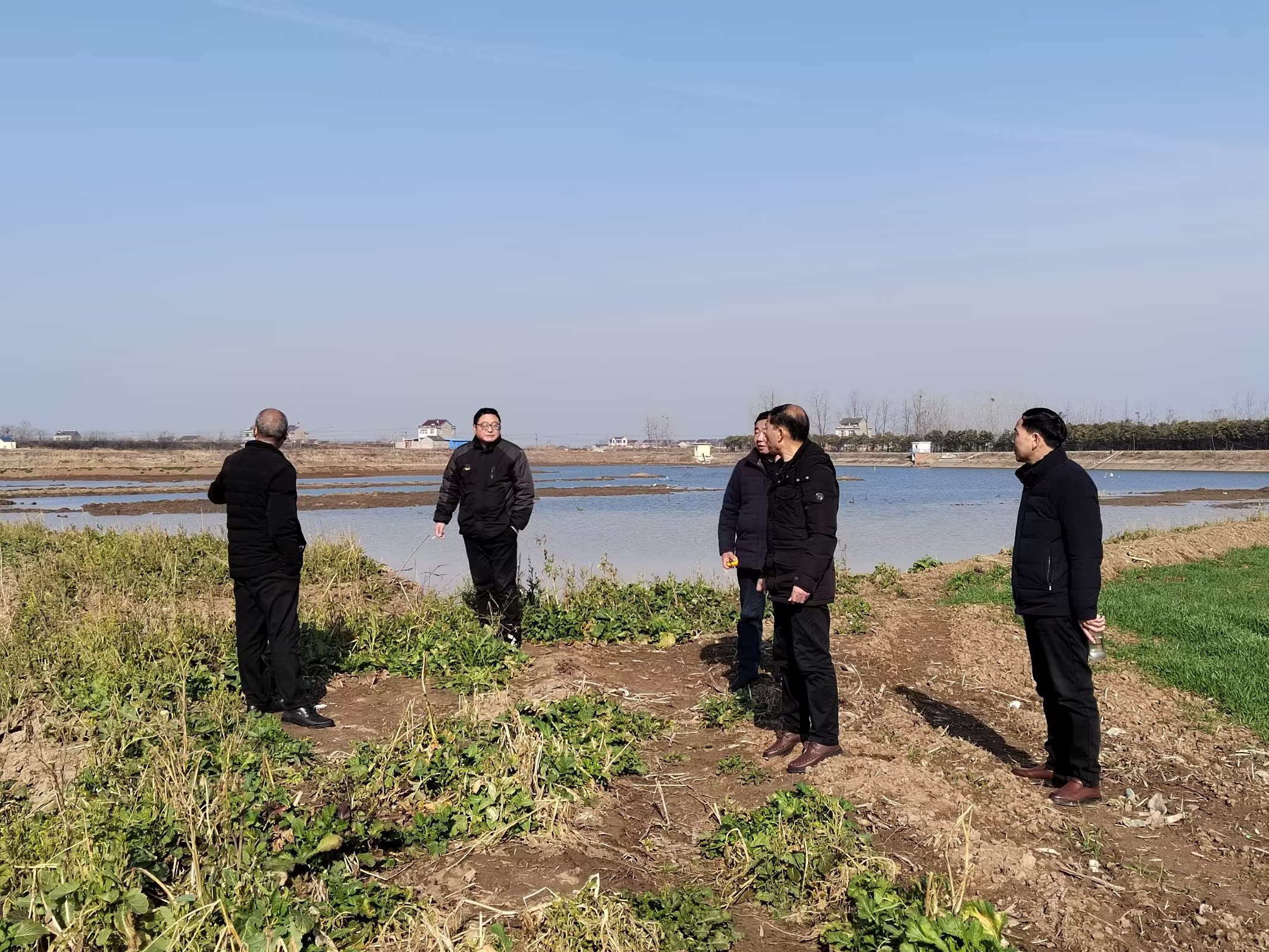 2月18日,鄭集鎮水利部門相關領導實地勘察老山村水利工程。