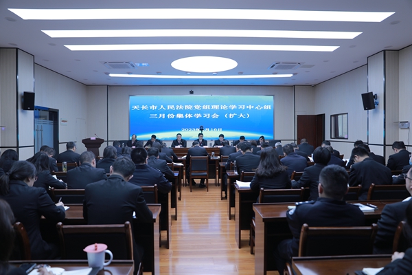 3月16日,天長法院召開黨組理論學習中心組(擴大)第三次集體學習會,院黨組書記、院長侯金鵬主持會議,全體在編干警參會。