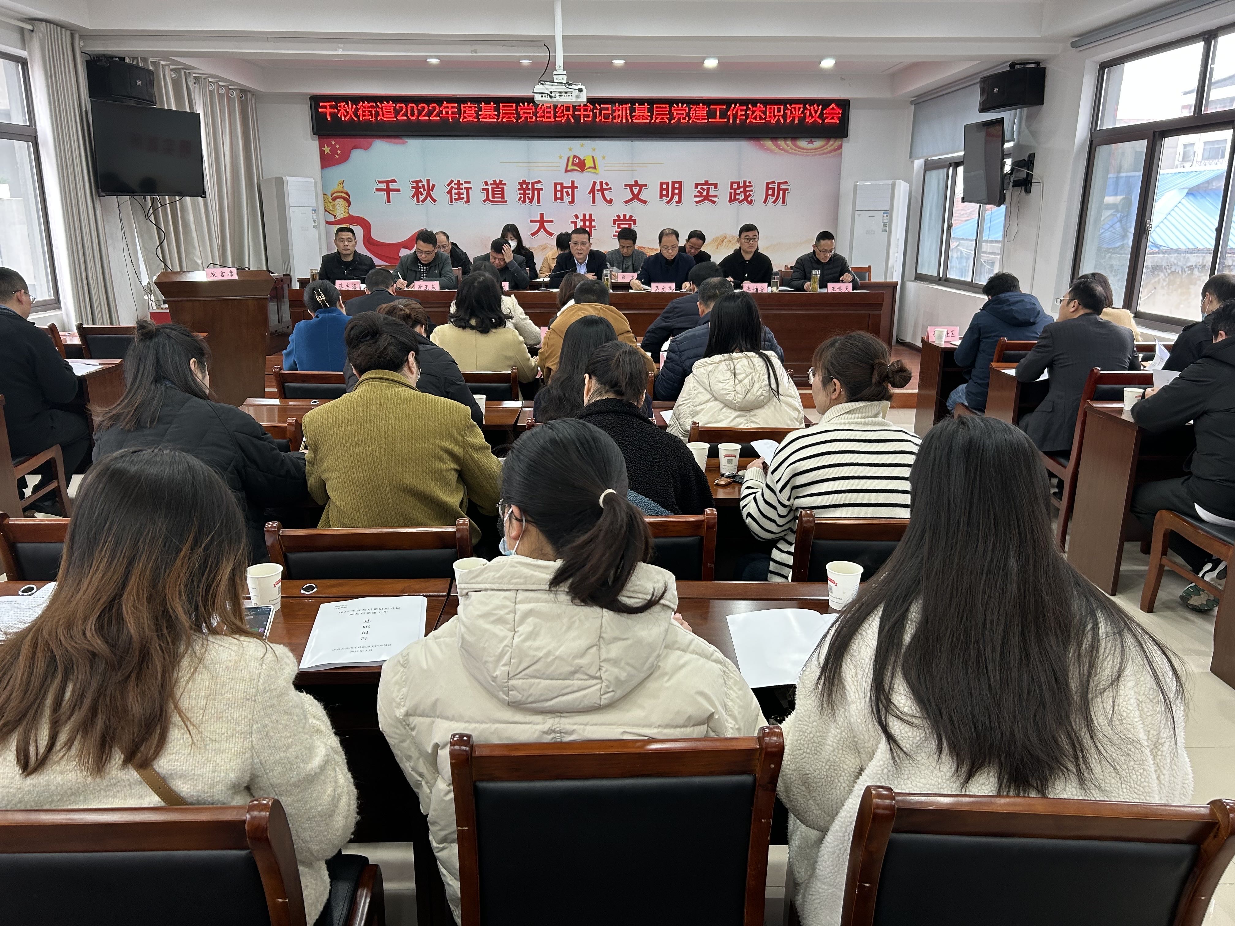 3月24日上午,天長市千秋街道召開2022年度基層黨組織書記抓基層黨建工作述職評議會,街道黨政班子成員、各居(村)黨組織書記和黨建文書、非公企業和社會組織及街直單位黨支部書記參加本次會議。