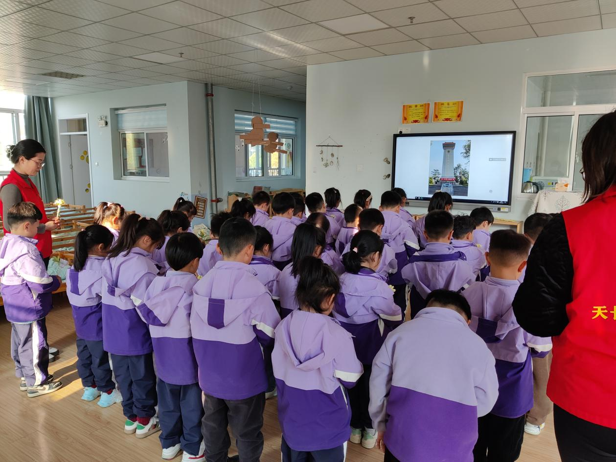 活動開始由志愿者為幼兒園大7班的小朋友們介紹了先烈們的事跡。“在這個追思故人的節日,我們要祭奠的不僅是我們的祖先,還有為祖國奉獻的革命英雄,沒有他們,就沒有我們的今天。小朋友們有誰知道我們今天的幸福生活是怎么得來的嗎?”志愿者說道。“我們今天的幸福生活是無數的仁人志士和革命先烈,拋頭顱,灑熱血,用青春、鮮血和生命換來的。有哪些小朋友知道這些名字嗎?”伴隨著屏幕里一個個名字的出現,我的腦海里浮現了一張張早已熟悉不已的面孔,這些面孔或笑或嚴肅。我知道他們是誰,我更加知道他們是為了誰而獻出自己的年輕生命。“我知道,他是楊靖宇叔叔!”“她是劉胡蘭姐姐!”……當小朋友們爭先恐后的說出他們的名字時,我就知道我們的先輩的努力沒有白費,這些愛國的種子早已在他們的心中種下,并將會不斷地發芽壯大,成為他們愛國意識的最牢固的精神支撐。