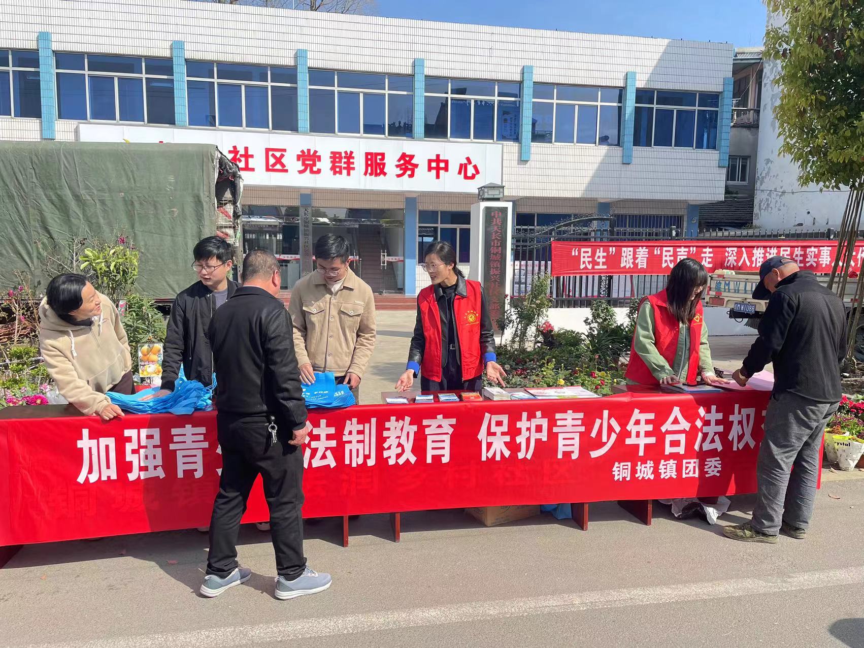 2023年3月29日上午,銅城鎮團委來振興社區宣傳“加強青少年法治教育,保護青少年合法權益”;3月29日是振興路逢集的日子人流量較多,宣傳效果特別好。