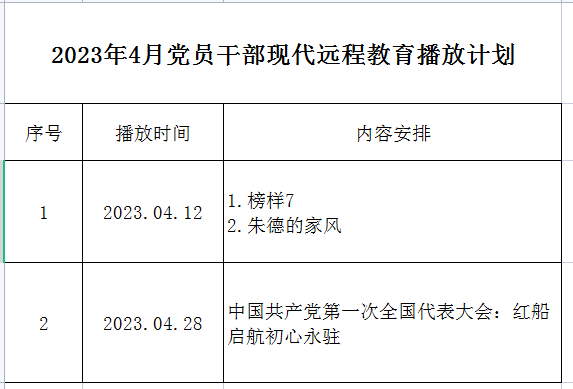 聯圩村2023年4月遠程教育播放計劃如上(圖)示
