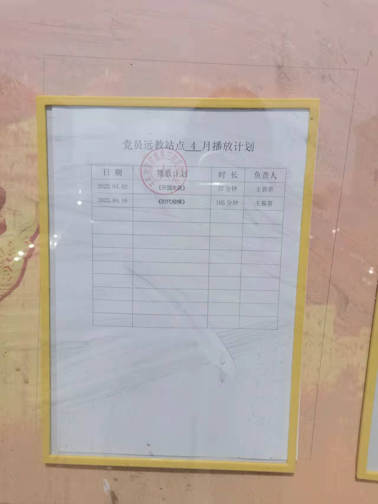 2023年4月8日,曹三村制定2月份黨員遠程教育播放計劃并進行公示。