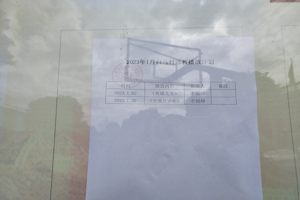 2023年1月1日,白馬村制定1月份黨員遠(yuǎn)程教育播放計劃并進(jìn)行公示。