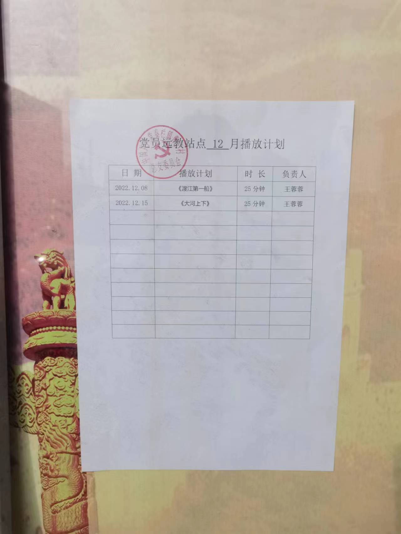 2022年12月5日,曹三村制定12月份黨員遠教教育播放計劃并進行公示。