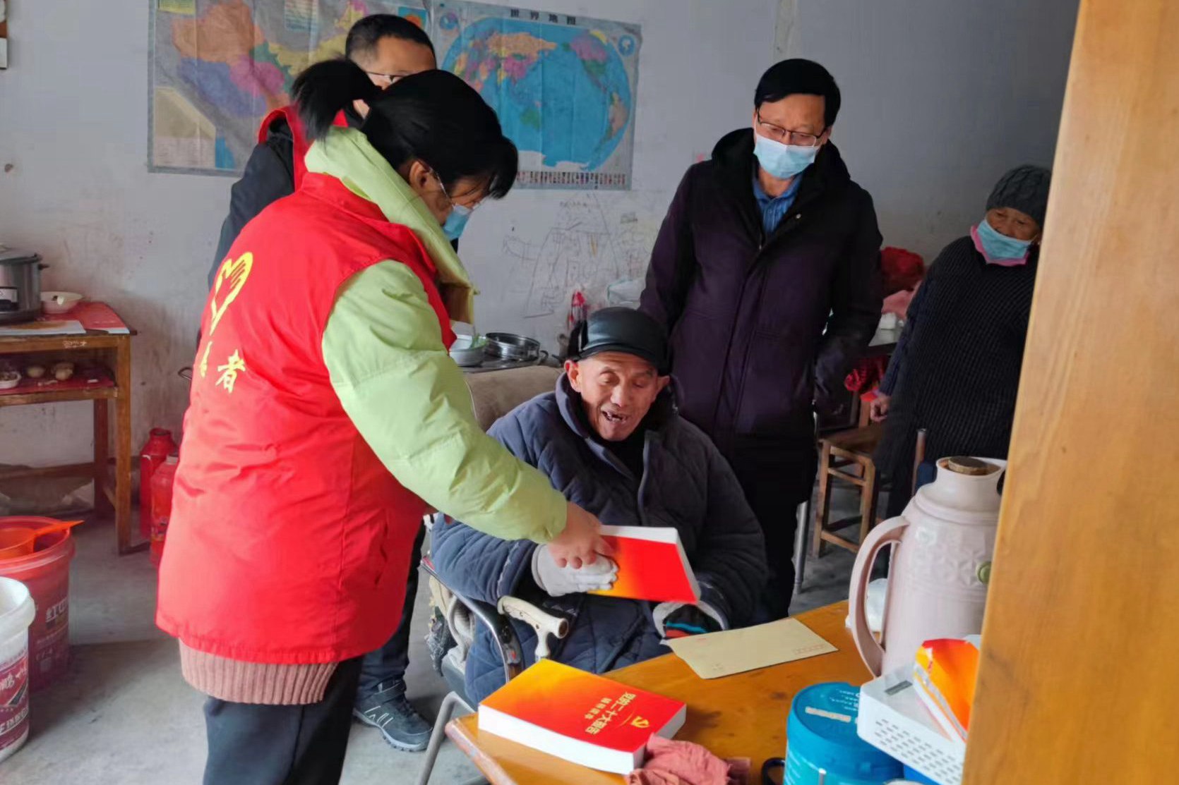 官橋社區(qū)將黨的二十大報(bào)告輔導(dǎo)讀本和二十大黨章修正案學(xué)習(xí)問答等學(xué)習(xí)資料送到老黨員手中,并細(xì)心宣講黨的二十大精神,在討論交流中共同學(xué)習(xí)。同時(shí),志愿者們熱情親切地詢問老黨員近期的健康狀況和生活情況。