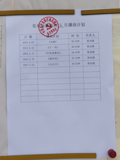 2023年5月4日,花園村制定5月份黨員遠教播放計劃,并進行公示。