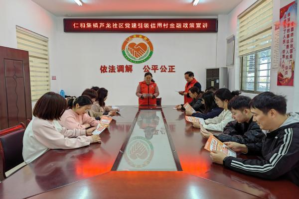 為促進黨建引領信用村工作提質增效,加強信用評級的結果運用,仁和集鎮以黨員干部為骨干,組建成立仁愛之花-金融志愿者服務隊,服務隊下沉到各村(社區),時而舉辦金融講堂,時而來到田間地頭,為信用主體送去最新的惠農金融政策。