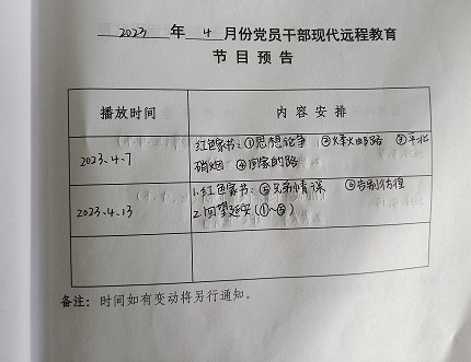 銅城鎮余莊村2023年4月遠程教育播放計劃如上圖所示。