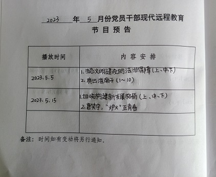 銅城鎮(zhèn)余莊村2023年5月遠程教育播放計劃如上圖所示。