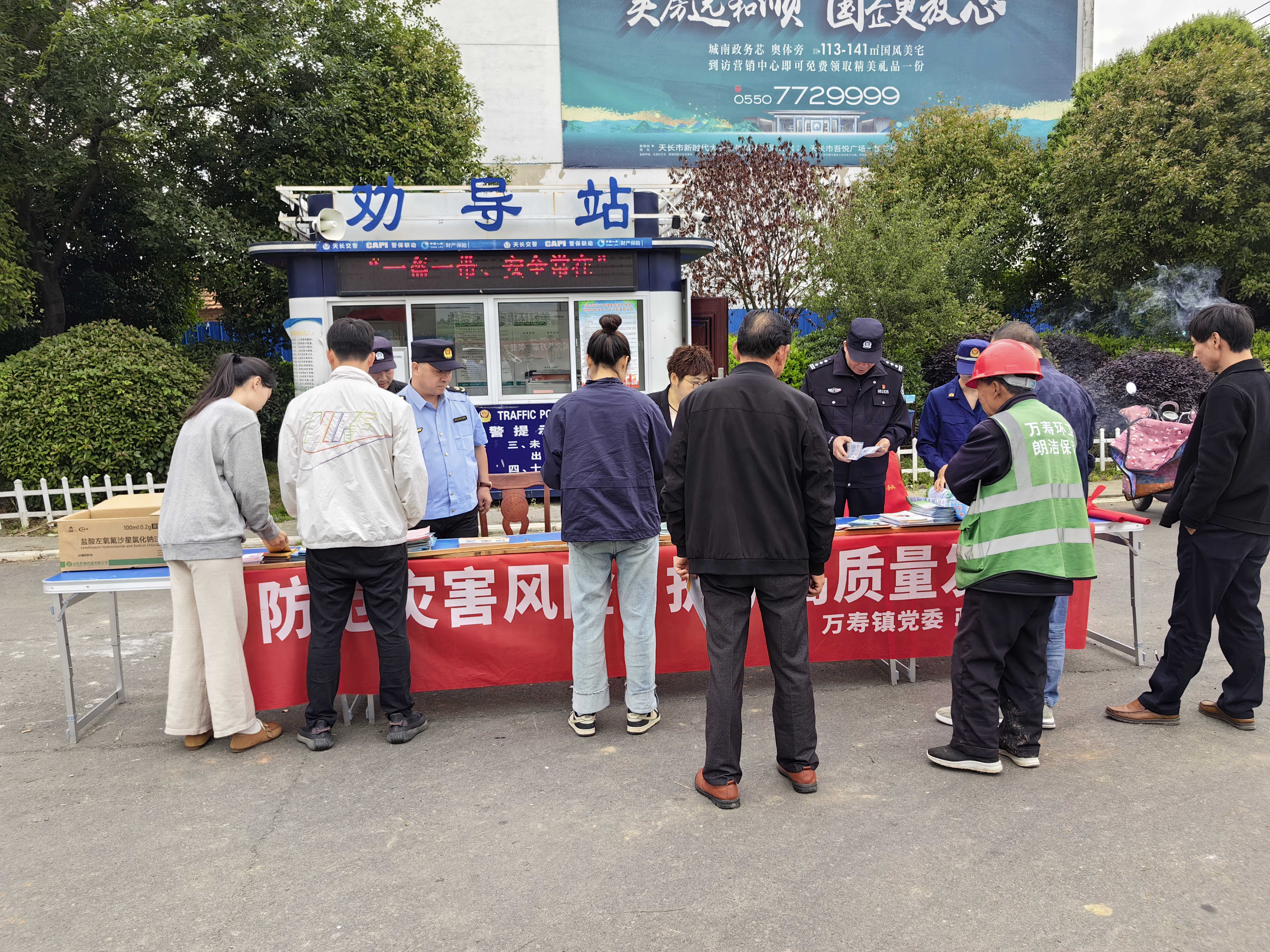 5月12日是全國第十五個防災減災日,萬壽鎮應急辦聯合轄區派出所、消防所、公路站開展以“防范災害風險 護航高質量發展”為主題的防災減災宣傳活動?,F場工作人員通過設置展板、咨詢臺、懸掛橫幅、發放宣傳資料和小禮品等方式,向過往群眾宣傳講解各類防災減災知識。