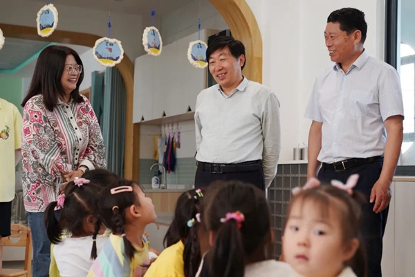 在千秋幼兒園,賀家平一行察看了園區(qū)軟硬件建設(shè)、日常教學(xué)、食堂管理等情況,邊走邊看、邊聽邊問,詳細(xì)了解學(xué)校建設(shè)發(fā)展、特色辦學(xué)、師資力量配備等情況。希望幼兒園再接再厲,始終將孩子的健康成長放在第一位,進(jìn)一步提高辦學(xué)質(zhì)量和水平,關(guān)心關(guān)注孩子們的身心健康,為少年兒童健康成長創(chuàng)造良好環(huán)境,讓孩子們?cè)谕嬷袑W(xué)、學(xué)中玩,健康快樂,茁壯成長。